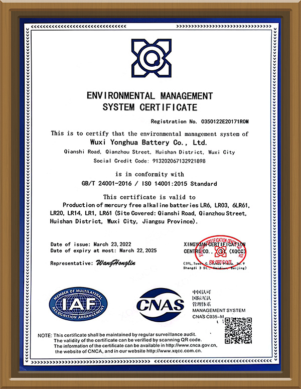 環(huán)境管理體系認(rèn)證證書